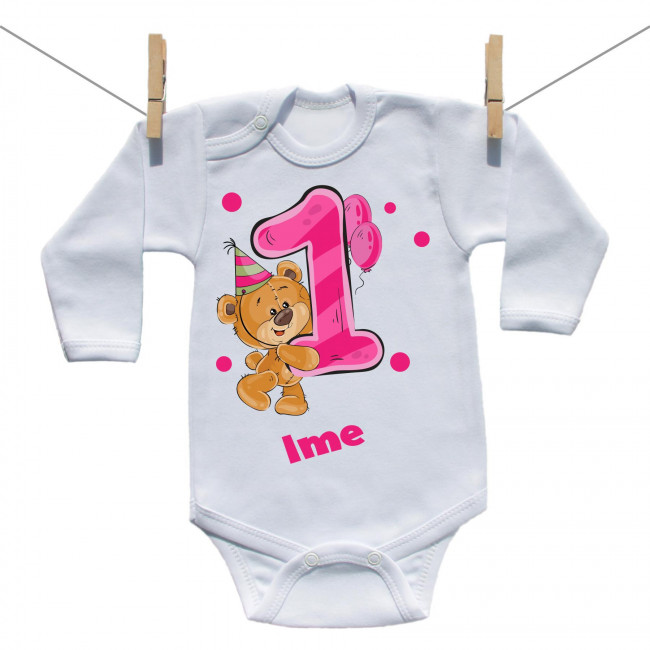 Bodije s dugim rukavom Imam 1 godinu s medvjedićem za djevojčice