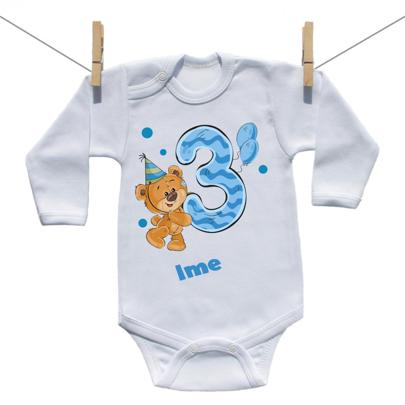 Bodije s dugim rukavom Imam 3 godine s medvjedićem za dječake