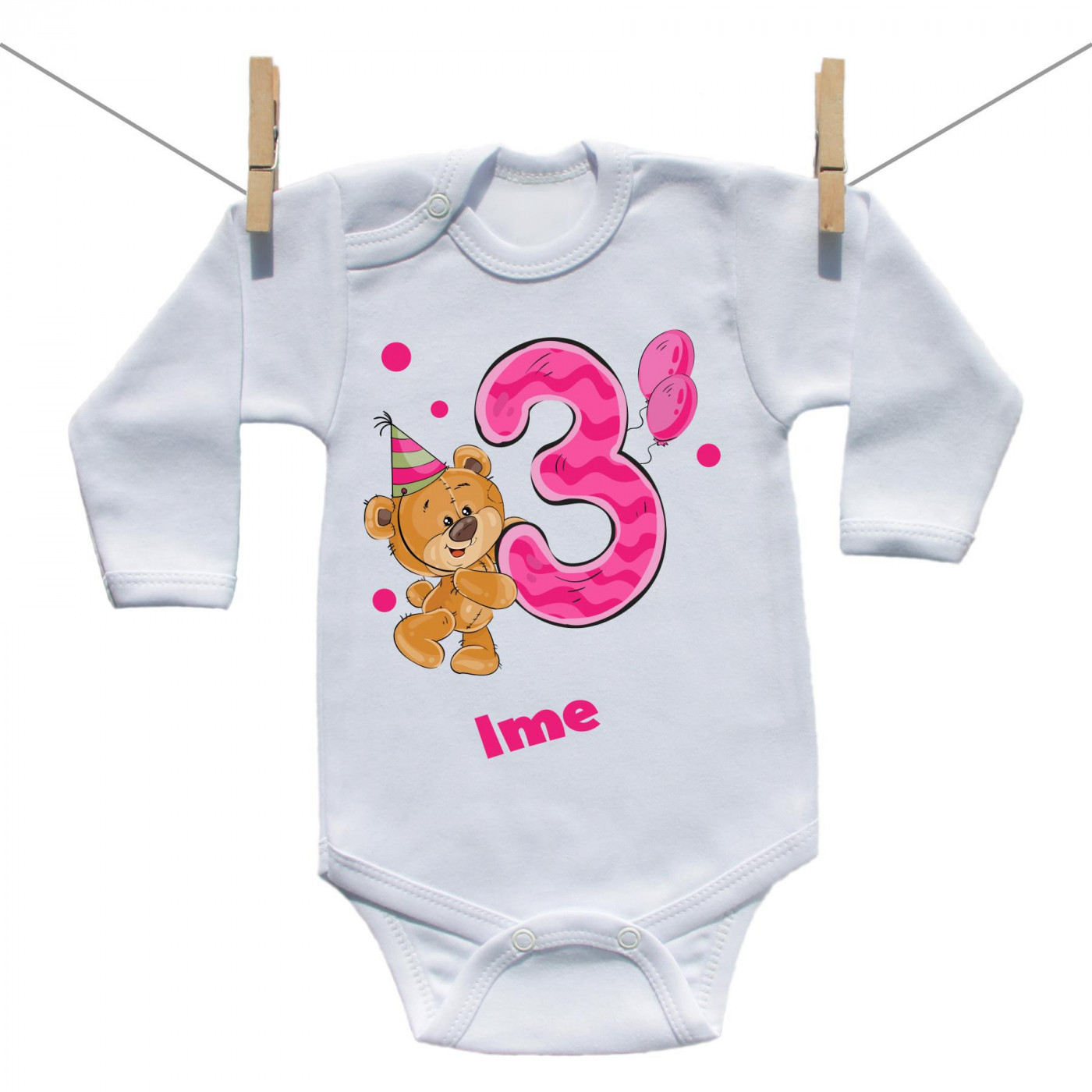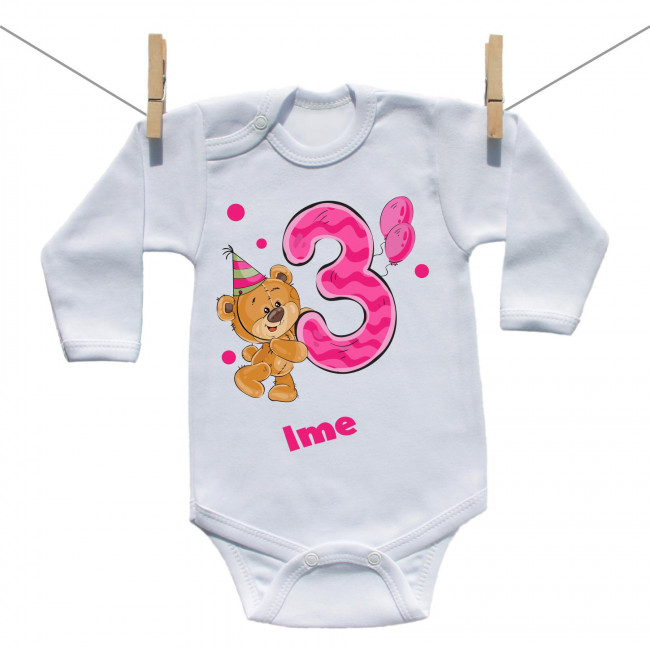 Bodije s dugim rukavom Imam 3 godine s medvjedićem za djevojčice