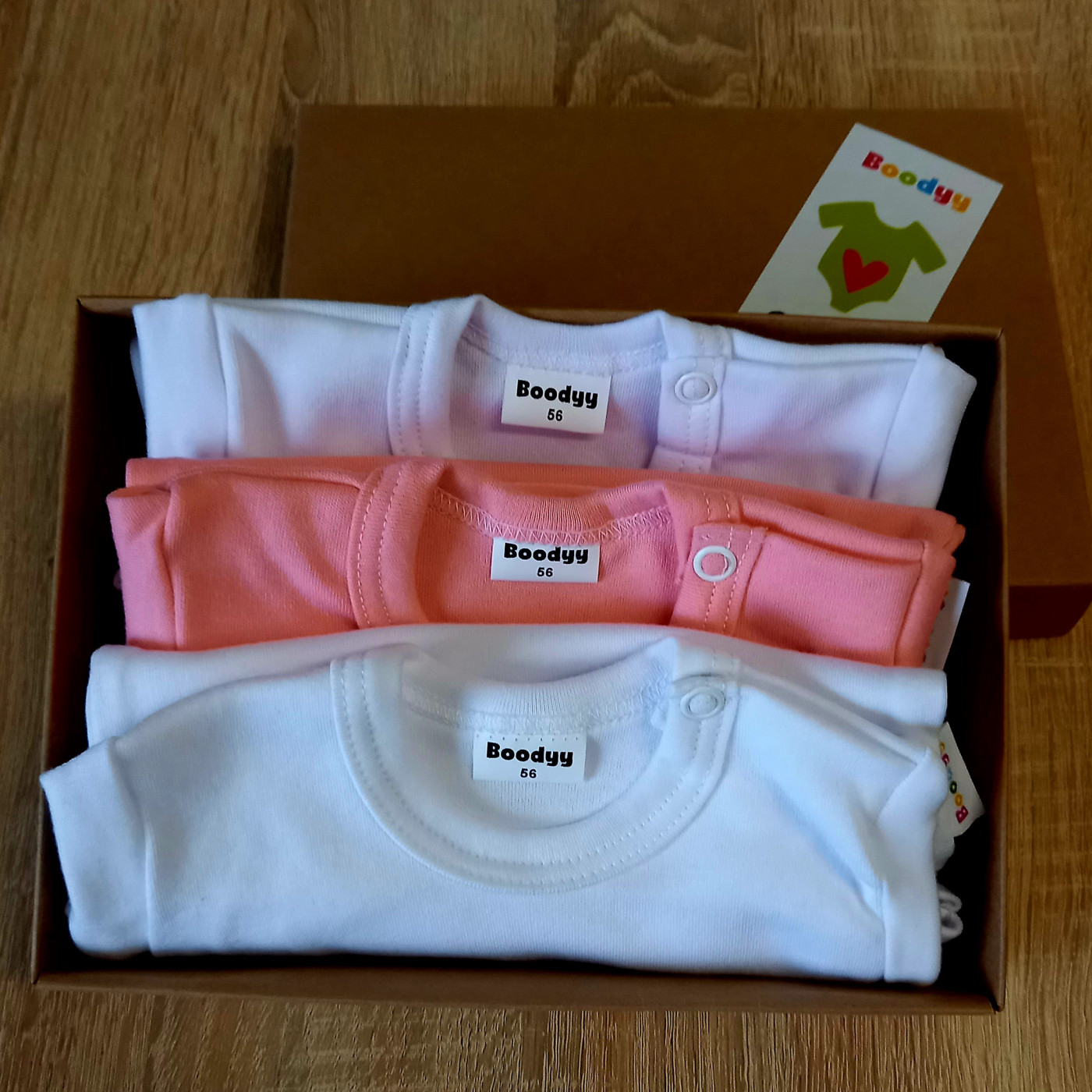Bodiji s dugim rukavima, bijeli, rozi, 3 kom