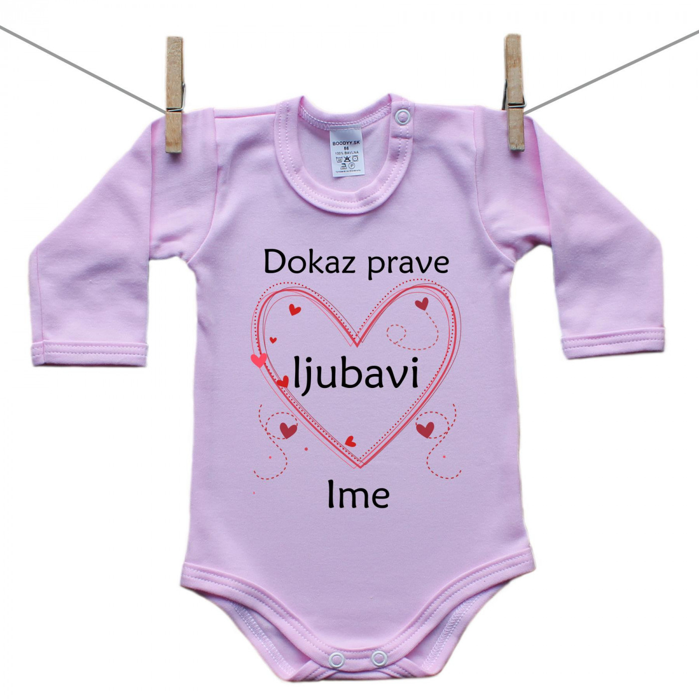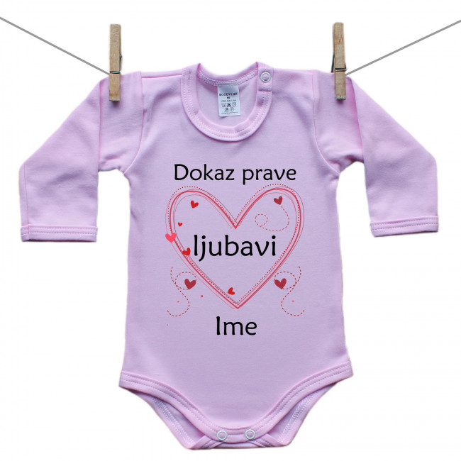 Roze bodije s dugim rukavom Dokaz prave ljubavi s imenom