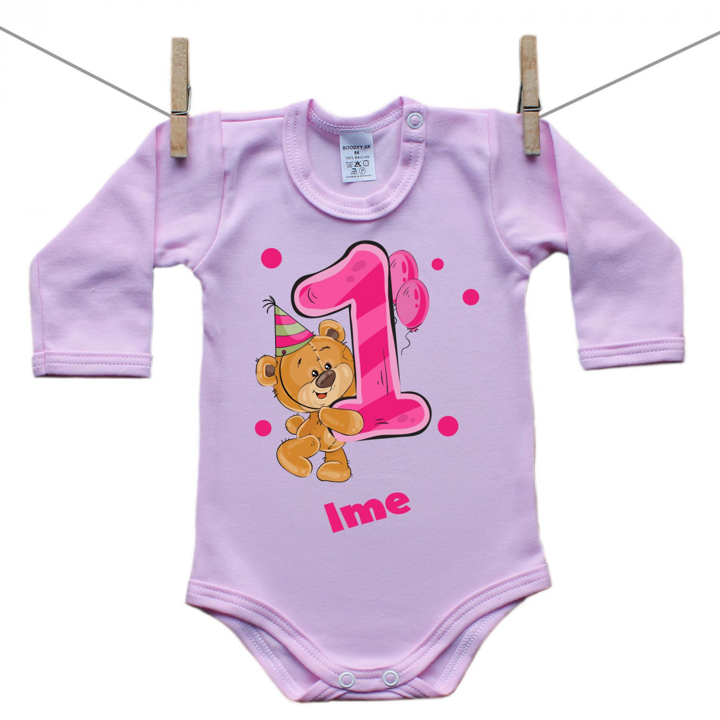 Roze bodije s dugim rukavom Imam 1 godinu s medvjedićem za djevojčice