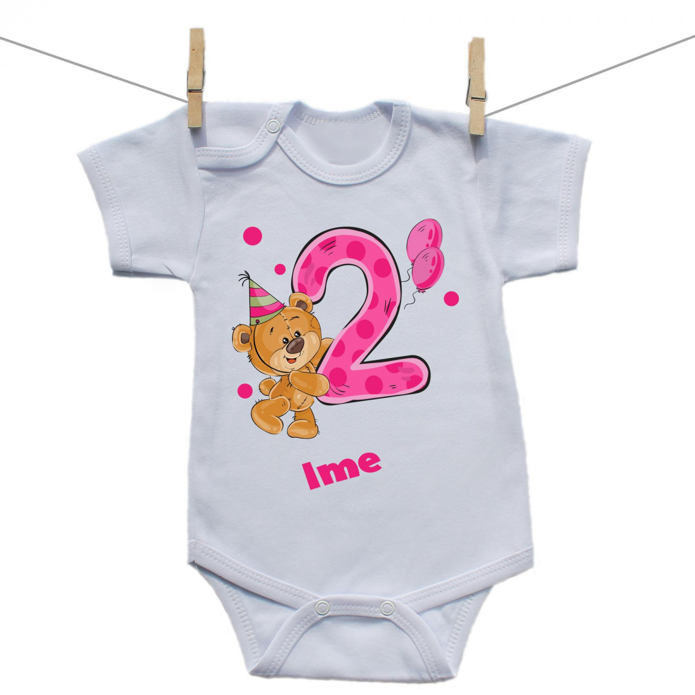 Bodije s kratkim rukavom Imam 2 godine s medvjedićem za djevojčice