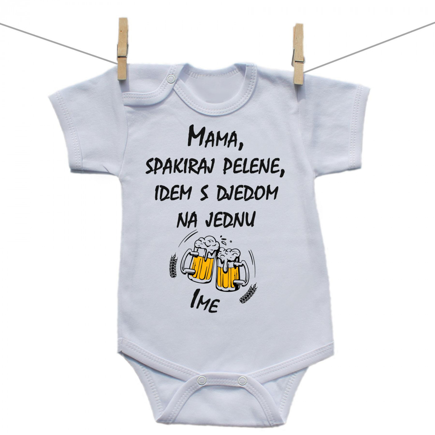 Bodije s kratkim rukavom Mama, spakiraj pelene, idem s djedom na jednu