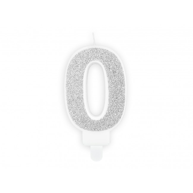 Rođendanska svjećica Broj 0, srebrna, 7cm