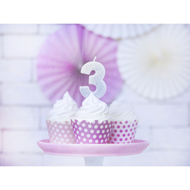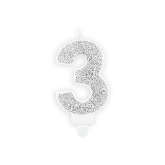 Rođendanska svjećica Broj 3, srebrna, 7cm