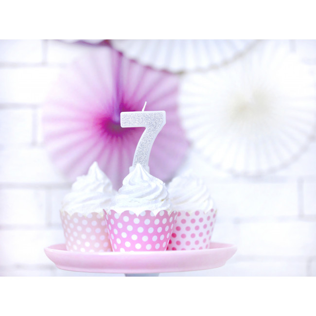 Rođendanska svjećica Broj 7, srebrna, 7cm