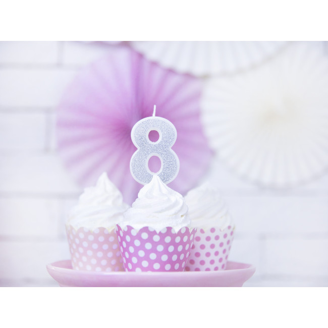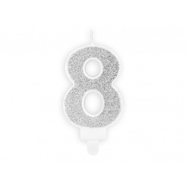 Rođendanska svjećica Broj 8, srebrna, 7cm