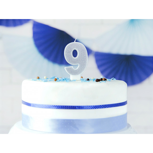 Dodajte rođendanskoj torti savršen sjaj s ovom srebrnom svjetlucavom svjećicom broj 9!
