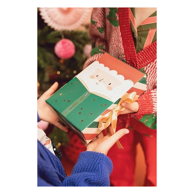Izmamite osmijeh na licima svojih najmilijih s ovom očaravajućom božićnom poklon kutijom s nezamjenjivim božićnim motivom u klasičnim crveno-zelenim bojama. Zlatna mašna daje kutiji pravi stil.