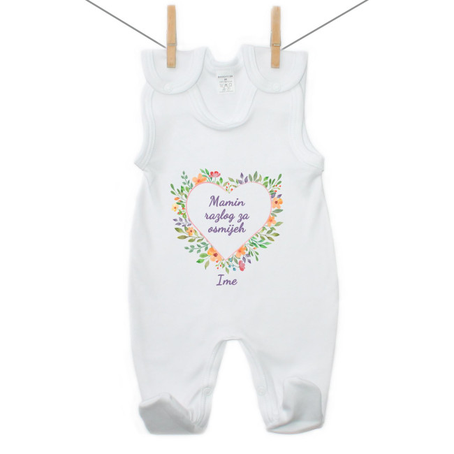 Kopčanje na ramenima i između nogavica olakšava oblačenje i presvlačenje. Dostupno u veličinama od 50 do 86 cm.