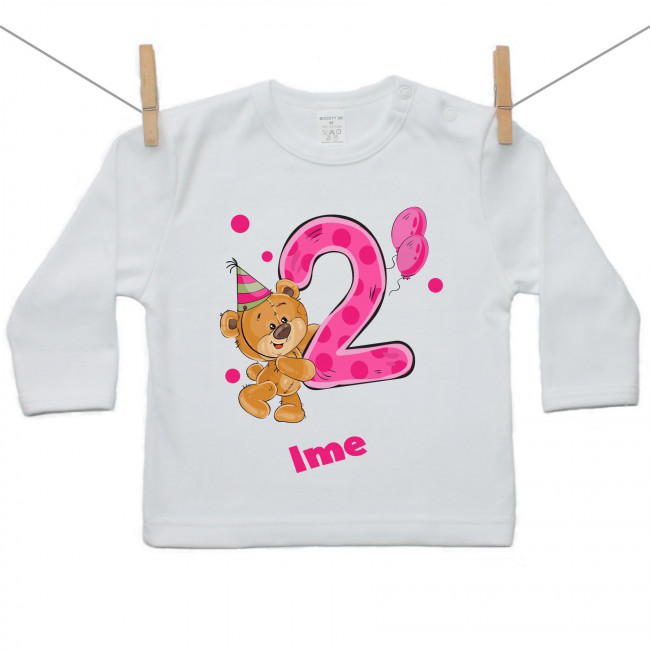 Majica s dugim rukavom Imam 2 godine s medvjedićem za djevojčice