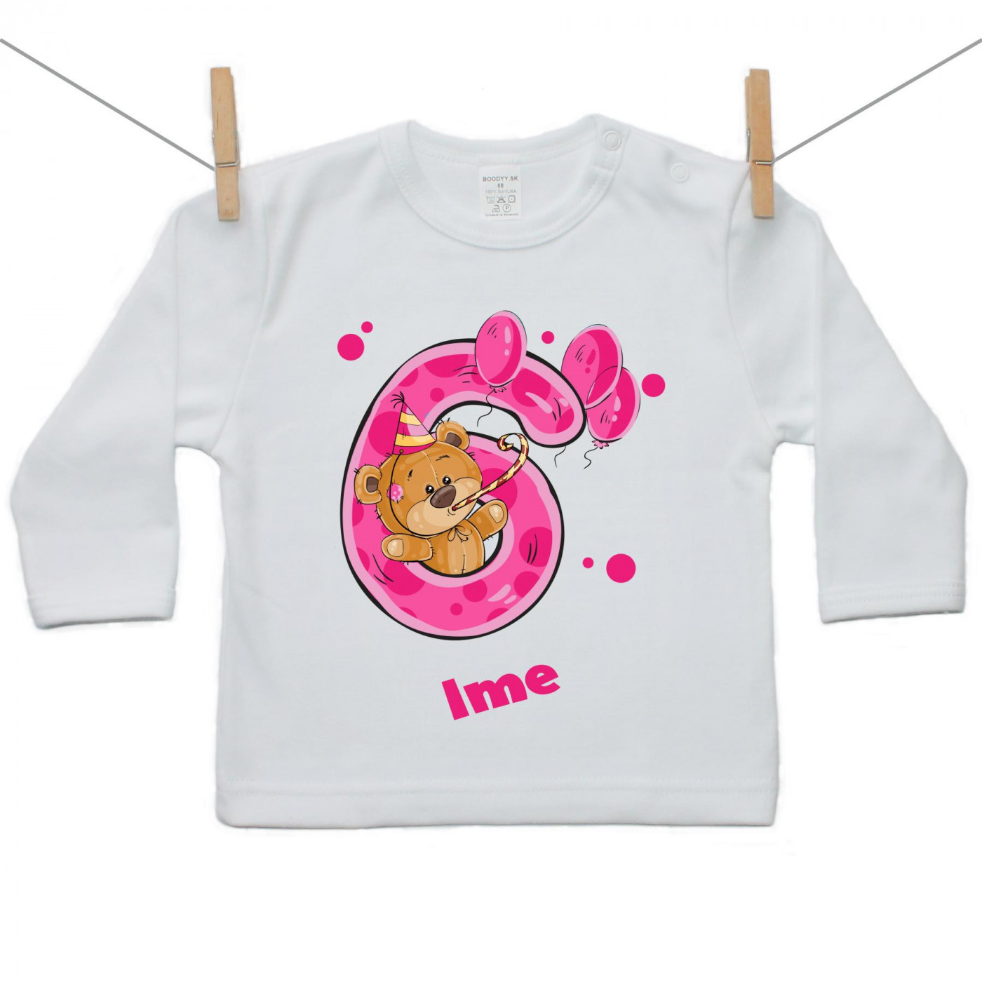 Majica s dugim rukavom Imam 6 godina s medvjedićem za djevojčice