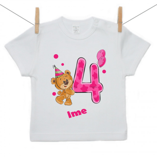 Majica s kratkim rukavom Imam 4 godine s medvjedićem za djevojčice