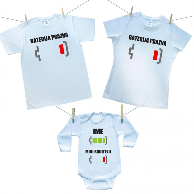 Obiteljski set (bodije s dugim rukavom) Baterija napunjena/prazdna s imenom