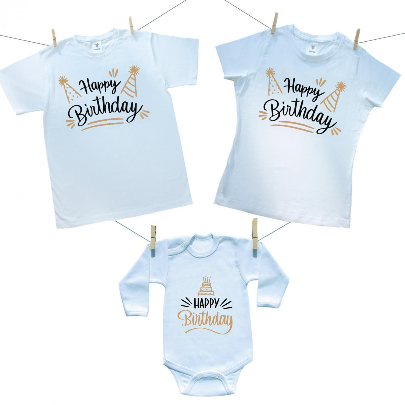 Obiteljski set (bodije s dugim rukavom) Happy birthday