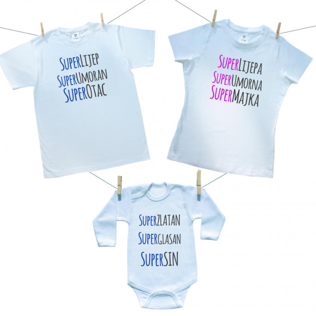 Obiteljski set (bodije s dugim rukavom) Super otac, majka, sin