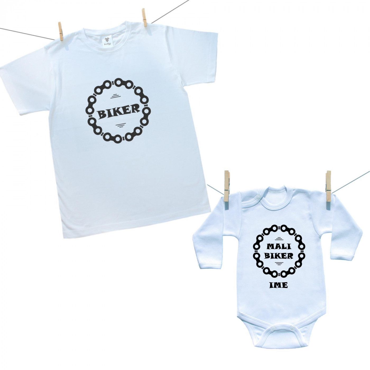 Obiteljski set (bodije s dugim rukavom) Tata i mali biker