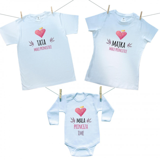 Obiteljski set (bodije s dugim rukavom) Tata, majka i mala princezica s imenom