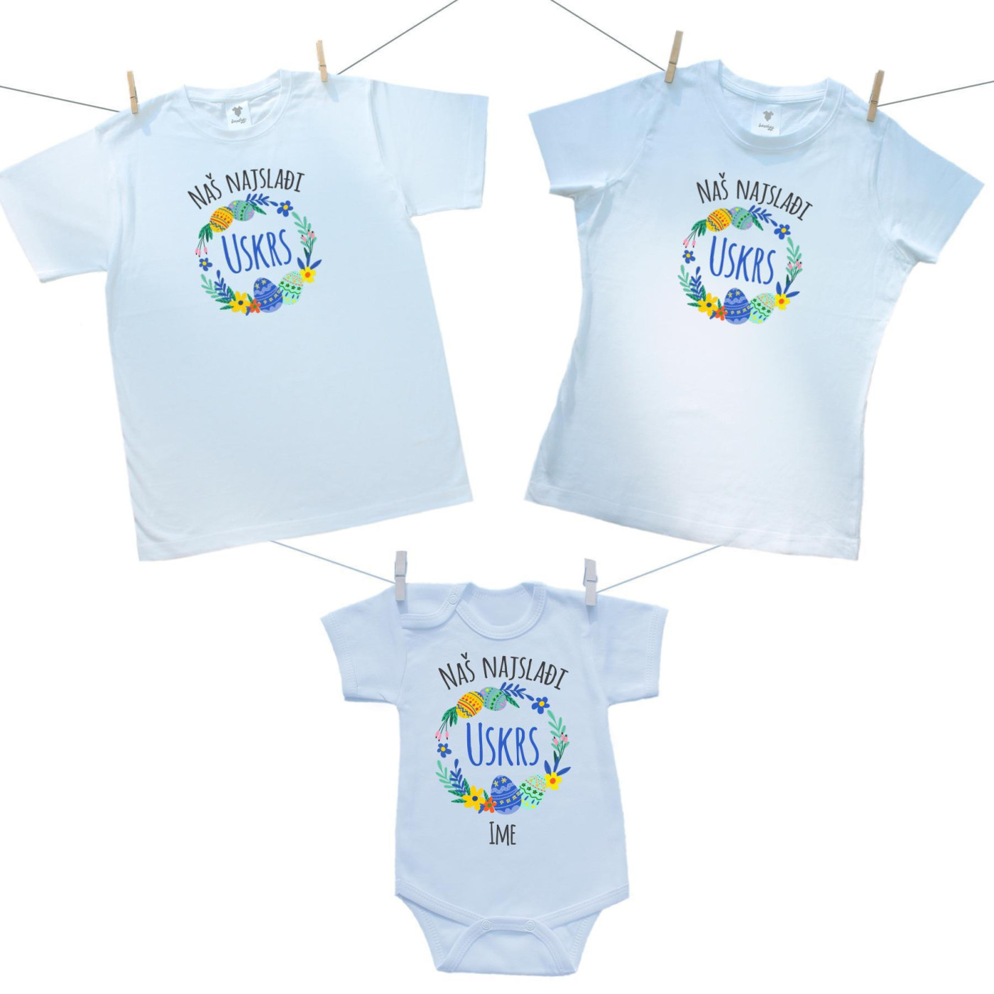 Obiteljski set (bodije s kratkim rukavom) Naš najslađi Uskrs