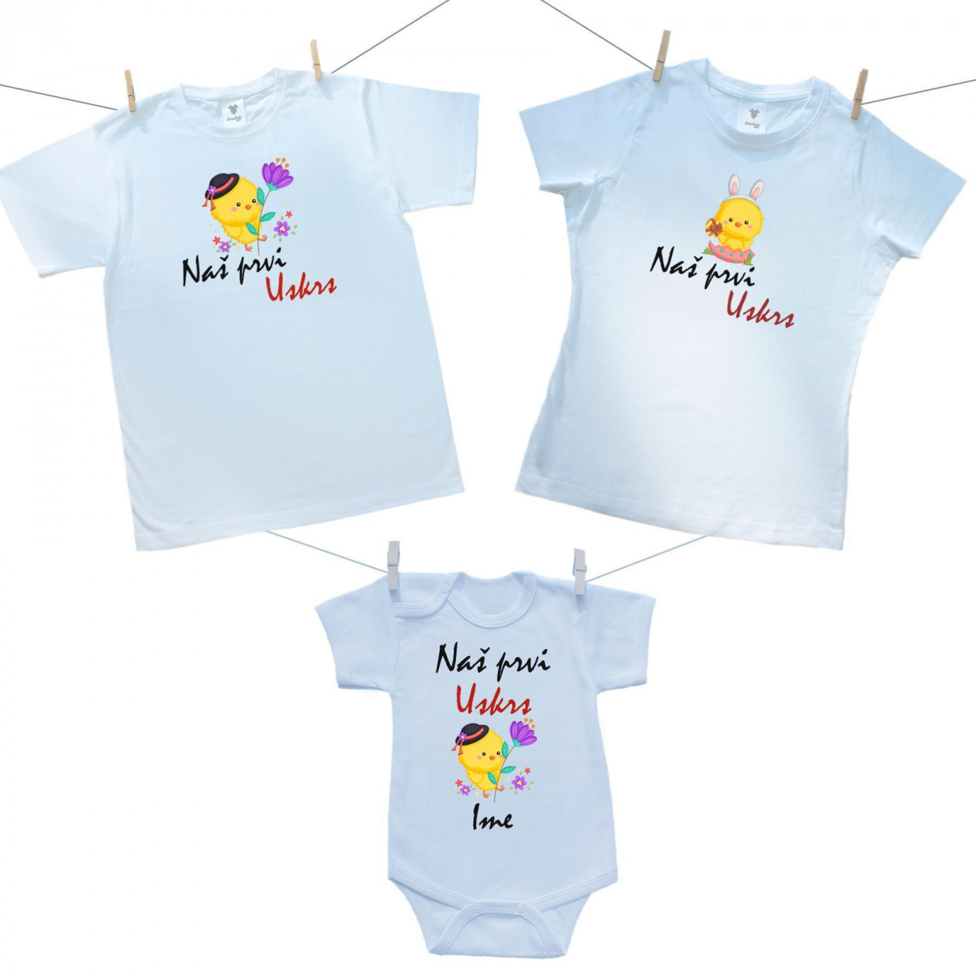 Obiteljski set (bodije s kratkim rukavom) Naš prvi Uskrs s imenom - Dječak