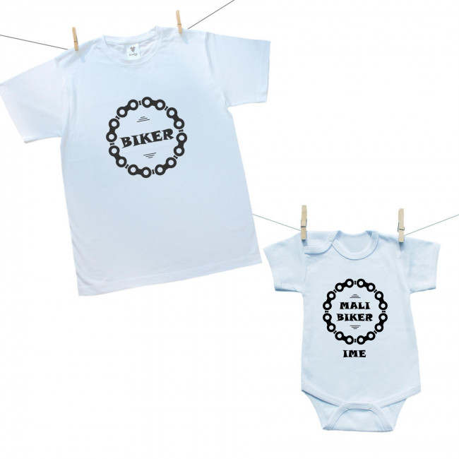 Obiteljski set (bodije s kratkim rukavom) Tata i mali biker