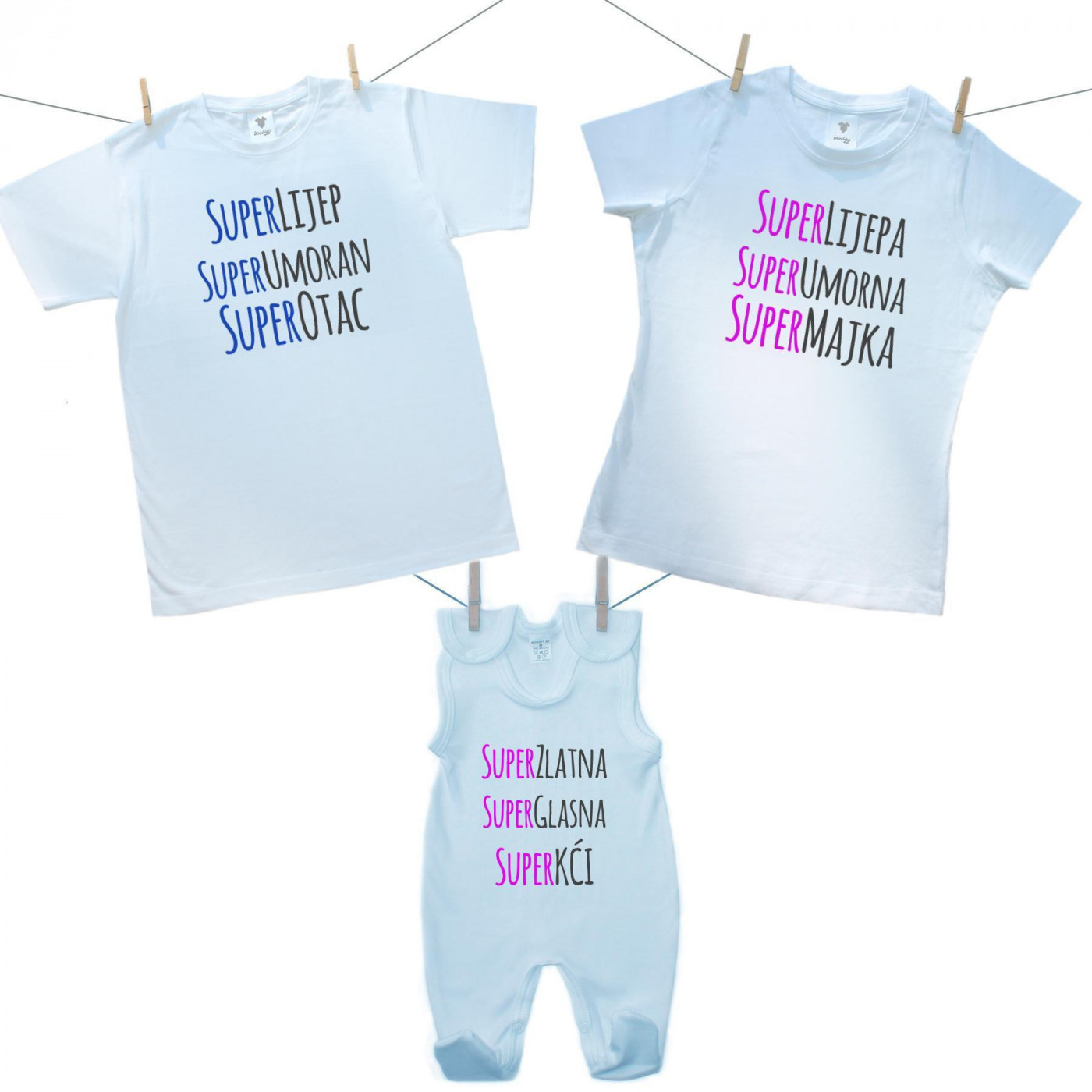 Obiteljski set (kombinezon) Super otac, majka, kći