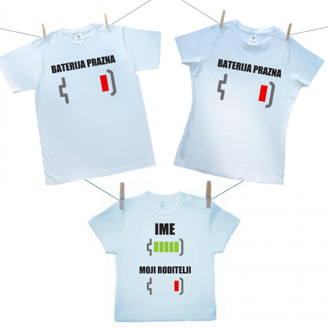 Obiteljski set (majica s kratkim rukavom) Baterija napunjena/prazdna s imenom