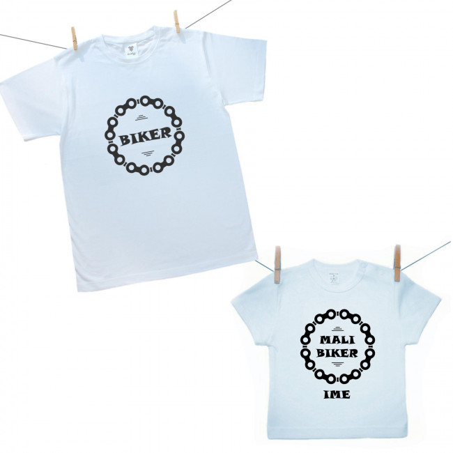 Komplet uključuje cool majicu za tatu s natpisom "Biker" i odgovarajuću dječju majicu za njegovog pomagača s natpisom "Mali biker". Kako bi poklon bio još posebniji i osobniji, dječju majicu možemo personalizirati imenom vašeg mališana. Ovo je savršen izbor za obiteljske izlete, rođendane ili prvu zajedničku vožnju – bilo to u dječjoj sjedalici na biciklu ili na guralici!
