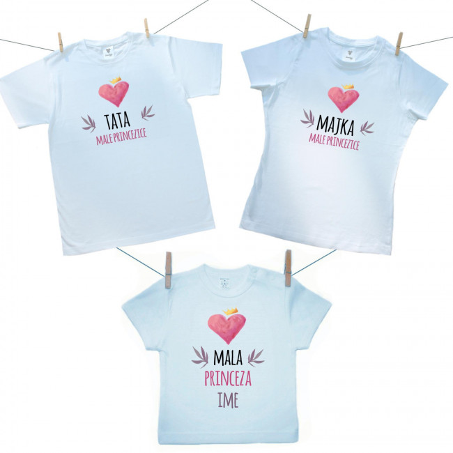 Obiteljski set (majica s kratkim rukavom) Tata, majka i mala princezica s imenom